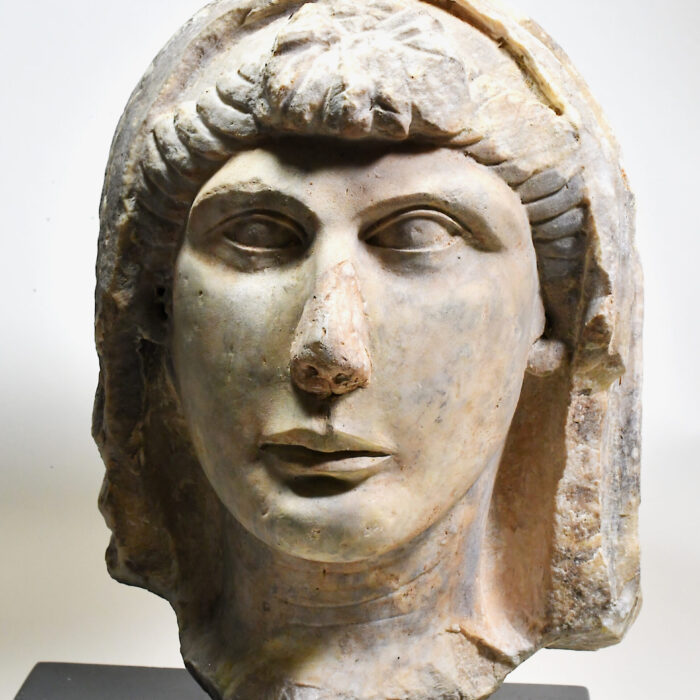 An Ancient Roman Marble Portrait Head of a Veiled Woman